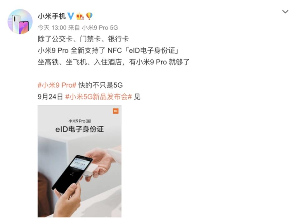 小米9Pro的NFC也迎来了新功能,他可以当作你的车钥匙,手机轻轻往车门一贴,就可以解锁车门,并且最新的eID身份证功能,让你出门更加方便,坐车住宿,让生活越来越方便!